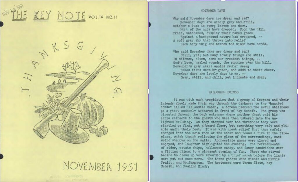 Em novembro de 1951, uma edição do boletim The Key Note foi publicada por um grupo chamado Os Guardiões (The Keepers). Embora o nome soe como o de uma sociedade secreta, tratava-se apenas dos funcionários administrativos e técnicos da Associação Geral. O nome “Guardiões” vinha do fato de que eles, presumivelmente, “guardavam as chaves.” E, segundo o boletim, também gostavam de casas assombradas.