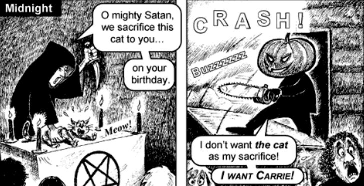 Outro fator foi a popularização da teologia carismática e o surgimento de narrativas sensacionalistas de supostos ex-satanistas, como John Todd — que afirmava que uma grande guerra entre bruxas e cristãos ocorreria no Halloween —, Mike Warnke e Lawrence Pazdar. Essas histórias se espalharam rapidamente nas comunidades cristãs e ajudaram a criar o Pânico Satânico dos anos 1980, quando se via indícios de complôs satânicos em todos os lugares. O cartunista Jack Chick se aproveitou disso, publicando folhetos em quadrinhos sobre o Halloween com imagens intensas e alegações infundadas, como a de que o feriado seria “o aniversário do diabo”.17